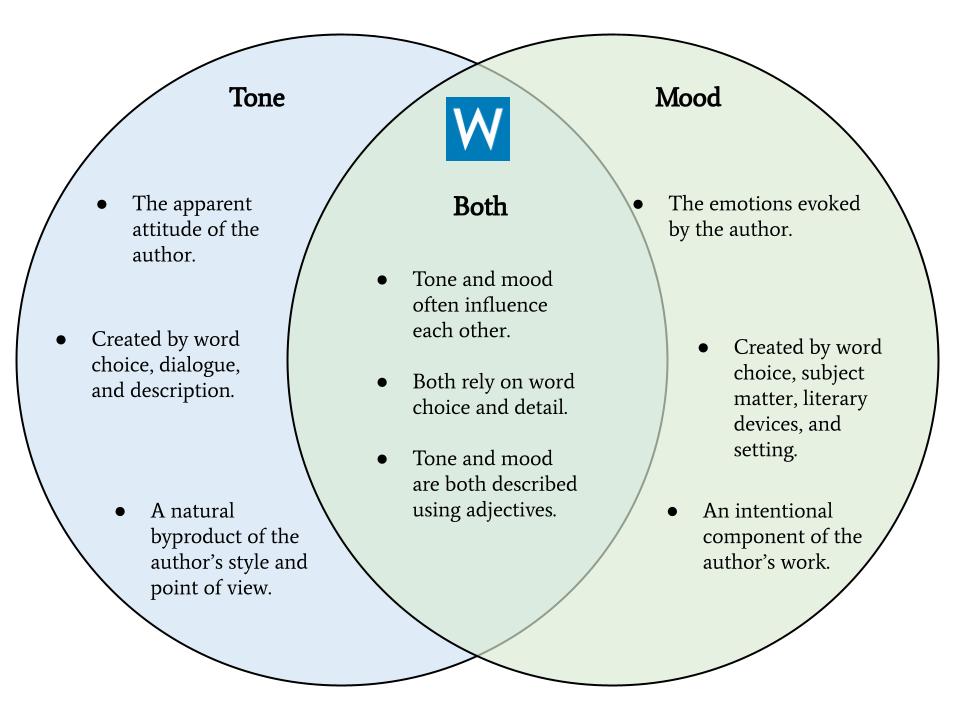 What is tone, and how is it different from mood? This Venn Diagram summarizes their differences.