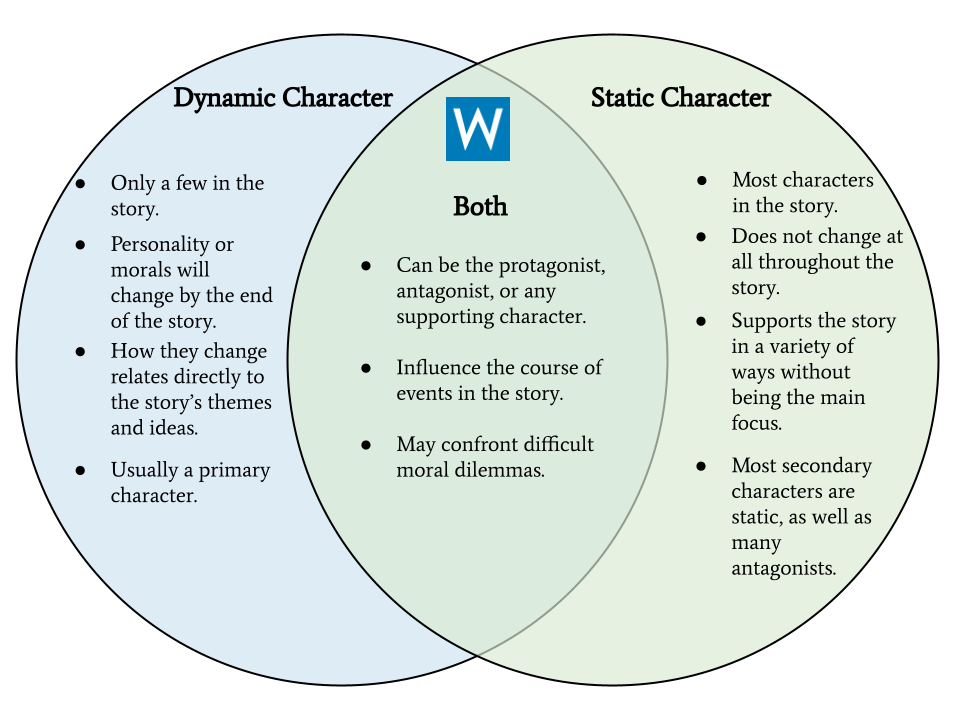 On the topic of static vs. dynamic characters, this Venn diagram highlights the main differences between the two.